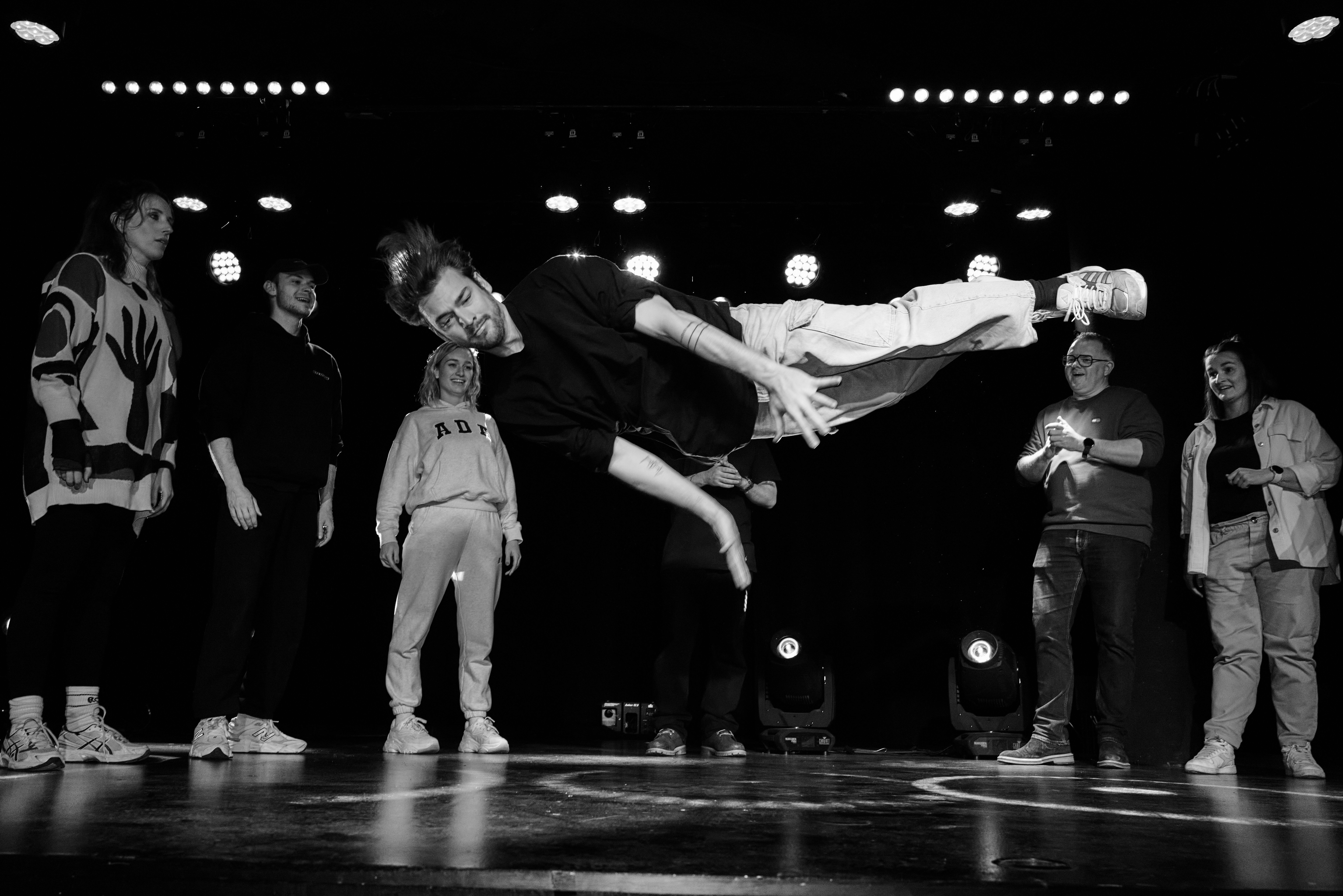"Ik volgde jaren geleden al eens een dansworkshop bij Khalid Freeman, die vroeger ook te zien was in STOMP-shows. De kans om dat opnieuw te doen, kon ik niet laten liggen," vertelt Laurins Dursin. "Tijdens deze workshop lag de focus niet enkel op dans, maar ook op percussie, wat iets meer buiten onze comfortzone is."